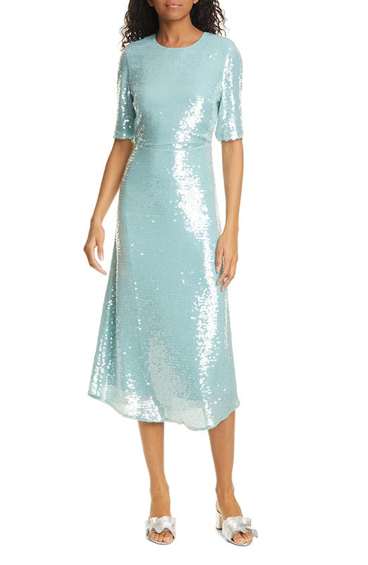 Sitting in front of a computer all day is weird. One moment you’re clicking around Nordstrom.com, trying to strategize for their upcoming Anniversary Sale and the next, you’re debating crowdfunding a $695 sequin dress. After discovering this Veronica Beard number when I should have been writing, I sent it to a number of friends the same way people email birth announcements as if to say, “Look at her” instead of “Look who’s here!” A-line ... seaglass ... shimmer on a classic silhouette … my heart sank another centimeter with every detail. It looks like something a mermaid would wear to try to fool her human crush into believing she’s a real girl. But hey, even sirens must have credit cards these days, right? —MC